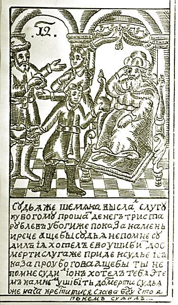 Иллюстрация к сказке «Шемякин суд». Гравюра на меди, первая половина XVIII века. Репродукция. Фото: РИА Новости / Балабанов