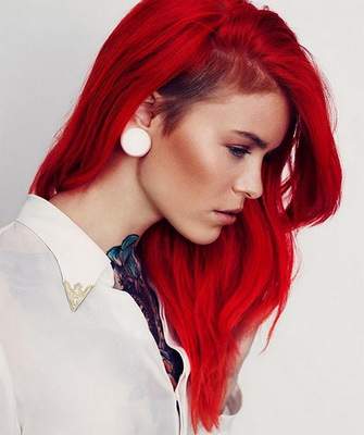 - ярко-красная помада для девушек в стиле глэм-рок;