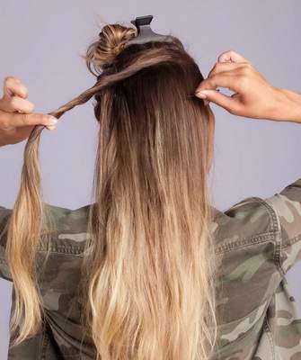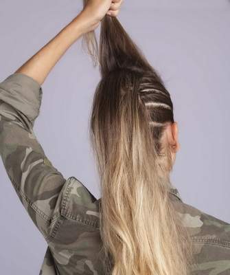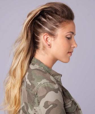 Посмотрите, как сделать имитацию выбритого виска на длинных волосах: