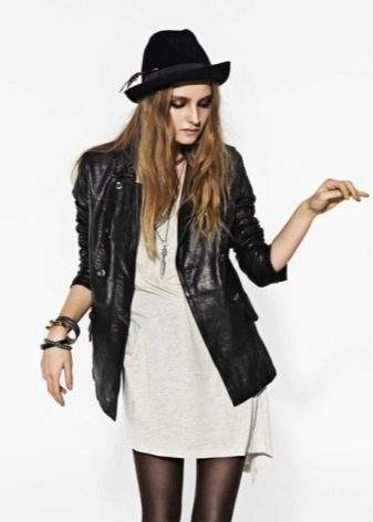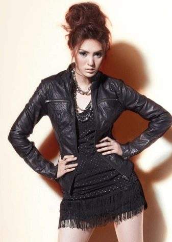 Самый популярный наряд – облегающее платье, поверх него – куртка-косуха из черной кожи на молнии, дополненный другими подходящими аксессуарами. Сногсшибательно смотрится кожаный корсет под узкую модель джинсов, из обуви – классические туфли на шпильке.