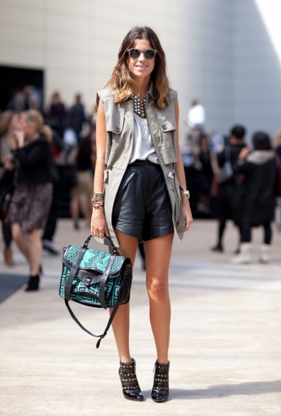 В последнее время мода возвращается к джинсам с высокой талией, идеальный вариант – зауженные кожаные штаны или откровенные шорты, естественно, в случае, если позволяет фигура. Если вы решили с головой погрузиться в «рок-образ», то можете дополнить шорты колготами в крупную сетку или яркими контрастными гетрами.