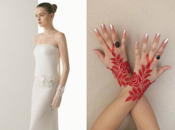 Украшают этот аксессуар лентами, бантами, бусинами, стразами, декоративными вставками. Чем роскошнее расшиты перчатки, тем меньше украшений должно быть на невесте.
