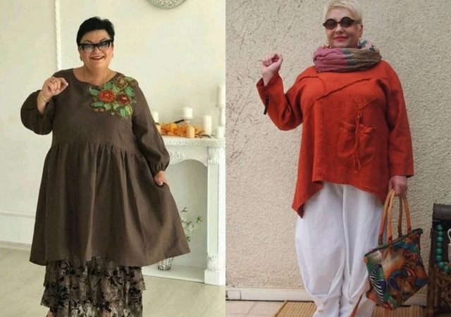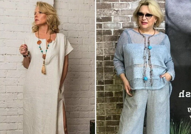 За 60. Подходящая летняя одежда для полных женщин 60 лет – это стиль бохо со свободными льняными брюками и рубашками-туниками в светлых природных оттенках.