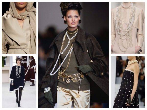 Звездные красавицы и обычные модницы сегодня любят экспериментировать над сочетанием таких украшений с одеждой в стиле casual. С однотонными платьями, классическими брюками и однотонными водолазками допустимо носить ожерелье в своем классическом виде или сложенное в несколько раз.