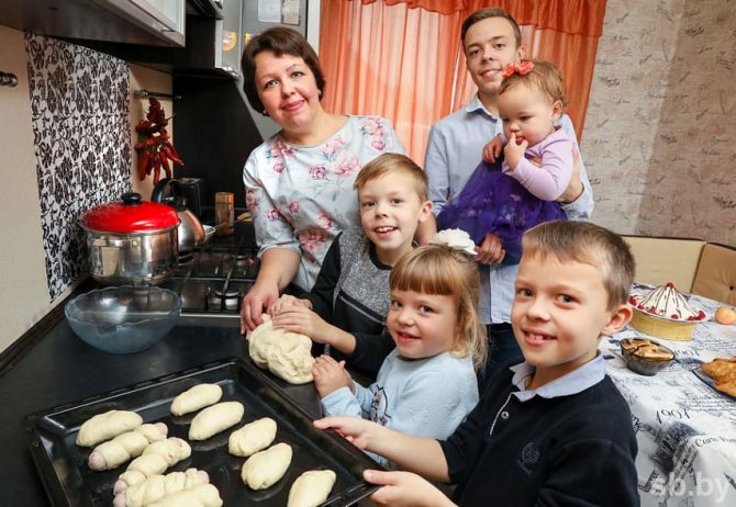 Старшему сыну Алексею уже 16. Первый мамин помощник учится в Витебске на электромеханика. Его брату Сергею — восемь, Игорю — семь. Общие любимицы — шестилетняя Маша и ее полуторагодовалая сестричка Даша. Трое из малышей — погодки. Мать-героиня улыбается: