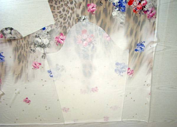 Для туники кроме обычного шифона можно взять креп шифон или вискозный шифон, а также штапель, батист, шелк и хлопок. Выбирать ткань нужно однотонную или с хаотичным рисунком, поскольку, пошив предполагает цельный отрез материи. Принт имеющий конкретное направление (вертикальный, горизонтальный, угловой) может при перевороте выглядеть странно и даже нелепо.