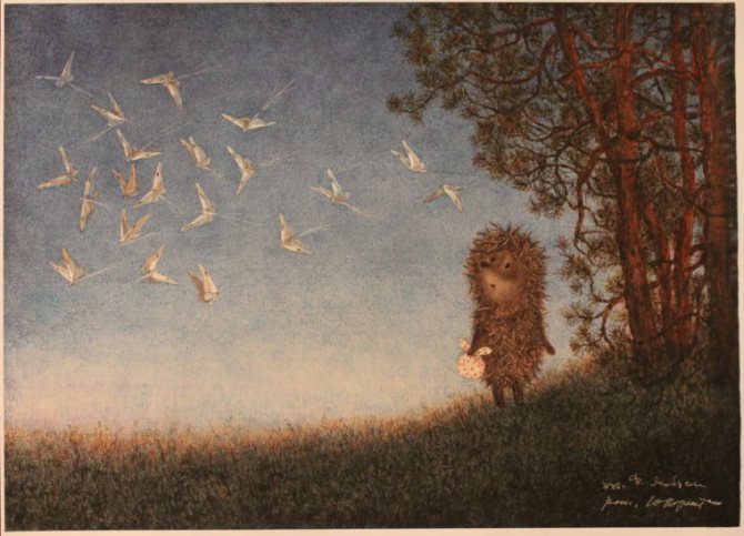 «Я смотрел на ситуацию, происходящую в «Ежике», как на абсолютную реальность, которая могла бы произойти со мной. Происходит преображение мира. И происходит перемена философии этого маленького персонажа. Бегало веселое, живое существо, и вот оно попадает в ситуацию абсолютно неадекватную и выходит из этой ситуации совершенно другим человеком. Это собственно то, что происходит с нами и в жизни…» — как-то признался Юрий Норштейн.