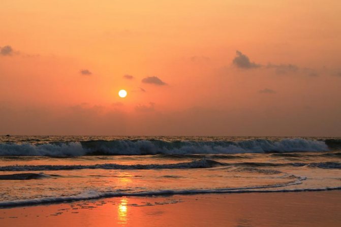 Об индийских закатах над морем южного побережья написаны целые книги. Но… По-настоящему яркие завораживающие картины, не смотря на многочисленные посещения этой страны, мы наблюдали здесь редко. В основном солнце садится в море без лучей огромным шаром, меняющим цвет с оранжевого на красный.